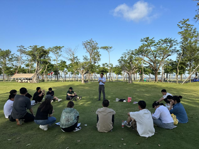 参观完珠海博物馆后,大家移步至旁边的海天公园,开始第二环节的交流会。首先,由在坐的青年们各自做一个简短的自我介绍,限时每人3分钟,让大家针对自身畅所欲言。为增进相互间的了解,杜主任以提问计分的游戏形式,带动全场人员的互动。会议中,大家积极、踊跃,同事与同事之间活跃了气氛。其后,林董的到来,将交流会提升到另一个高度。林董在有限的时间里,给大家分享了十多年前曾经分享过的“成功之道”——三大法宝:多动脑筋、不断学习、贵在沟通;三小秘笈:乐在工作、主动出击、甘吃小亏。在林董的分享中,大家都认真听讲,还不时会用手机记录精髓之处。